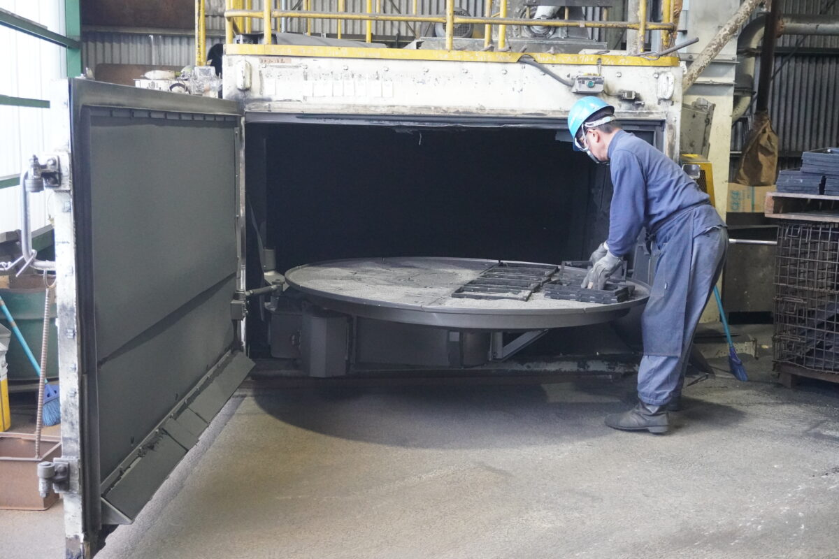そんな鋳物がキレイになる秘密は、『ショット設備(ショットブラスト装置)』にあります。鋳物が使える状態に仕上がっていく過程には、この設備が欠かせません。