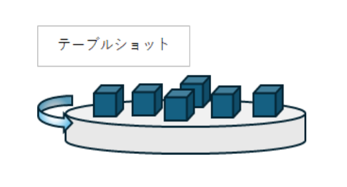 回転するテーブルの上に鋳物を直接置き、ショットを当てる方式。