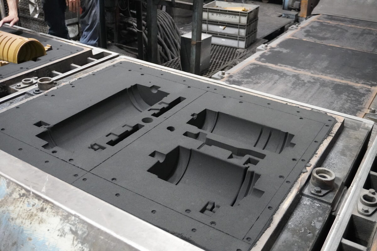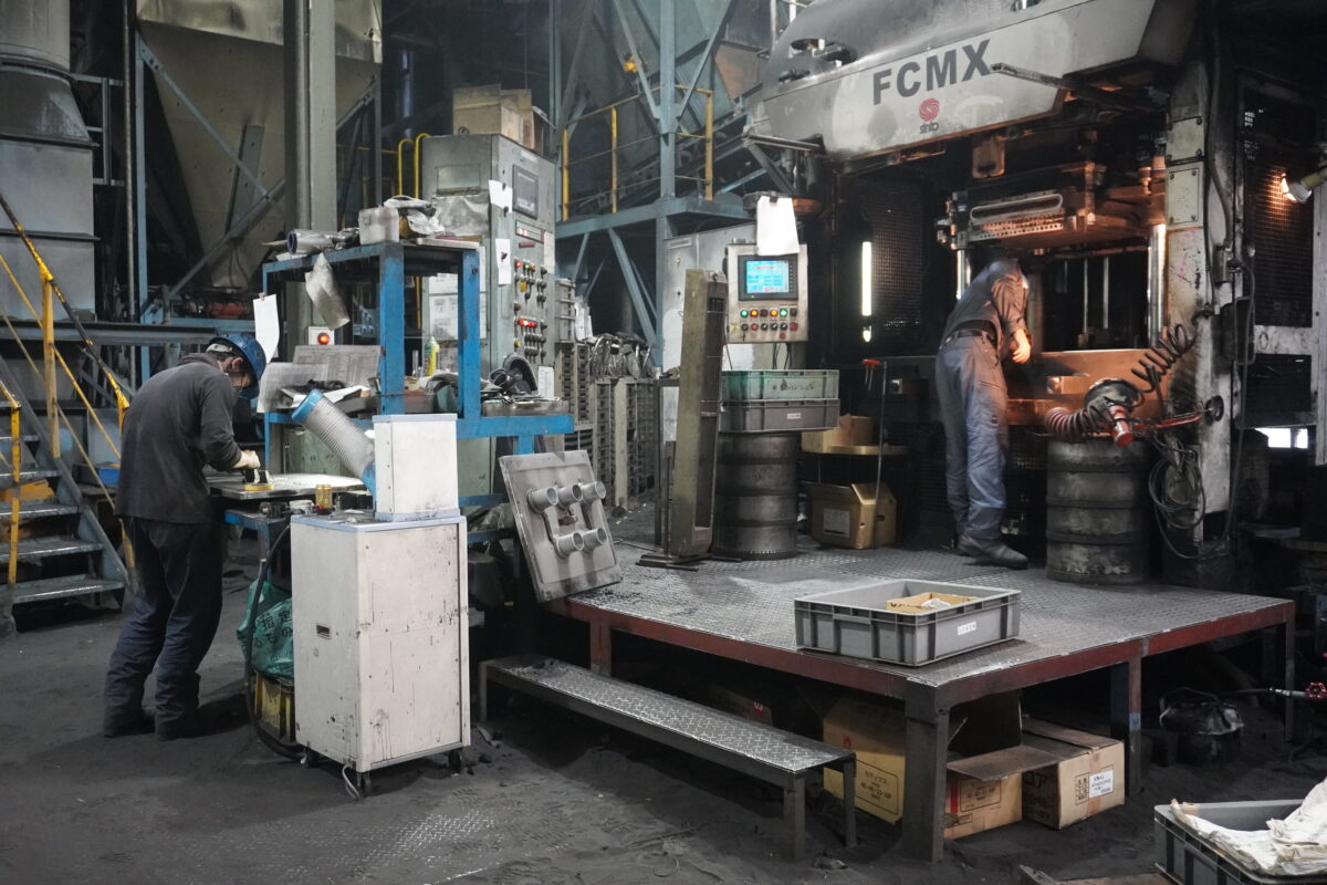 そんな造型を正確かつ効率的に行うために活躍するのが「造型機」です。現代の鋳造工場では、自動化や省力化が進み、造型機が人の手に代わって安定した鋳型づくりを実現しています。